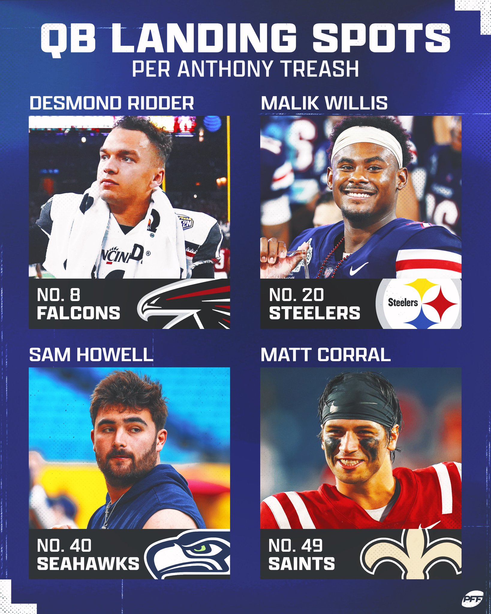 Webwith the draft starting in just a few days, pro football focus released their final big board of the 2023 prospect class. Here is a look at pff’s top 10 players. Webprospect rankings and projections for the nfl draft 2023. Player and position breakdowns of the top prospects and averages of other scouting reports. Web2024 nfl draft grades for all 32 teams. The 2024 nfl draft is officially in the books. After a flurry of selections from thursday to saturday, 257 players were.